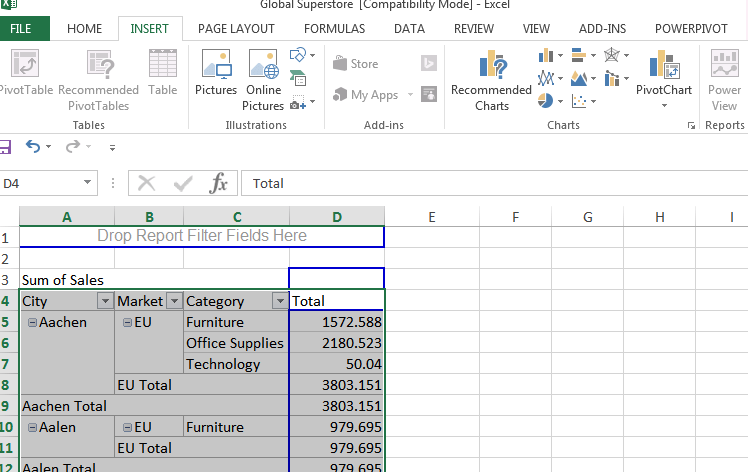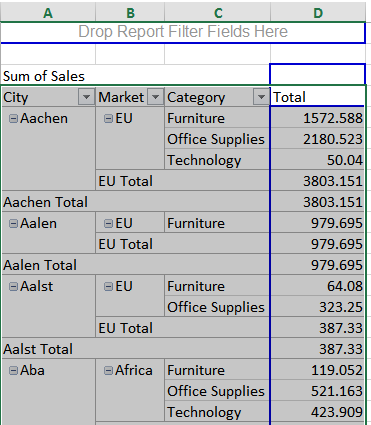 - You will get a pivot table like this. Now select parameters that you want to show in your graph