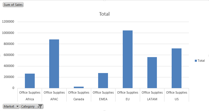 - But wait, the catch is here. At the left bottom side of the graph, do you see few tabs? Yes, these are your parameters of your graph which you can adjust right there. For example I have changed the parameter Category here and I have only taken Office supplies and the graph responds to that automatically